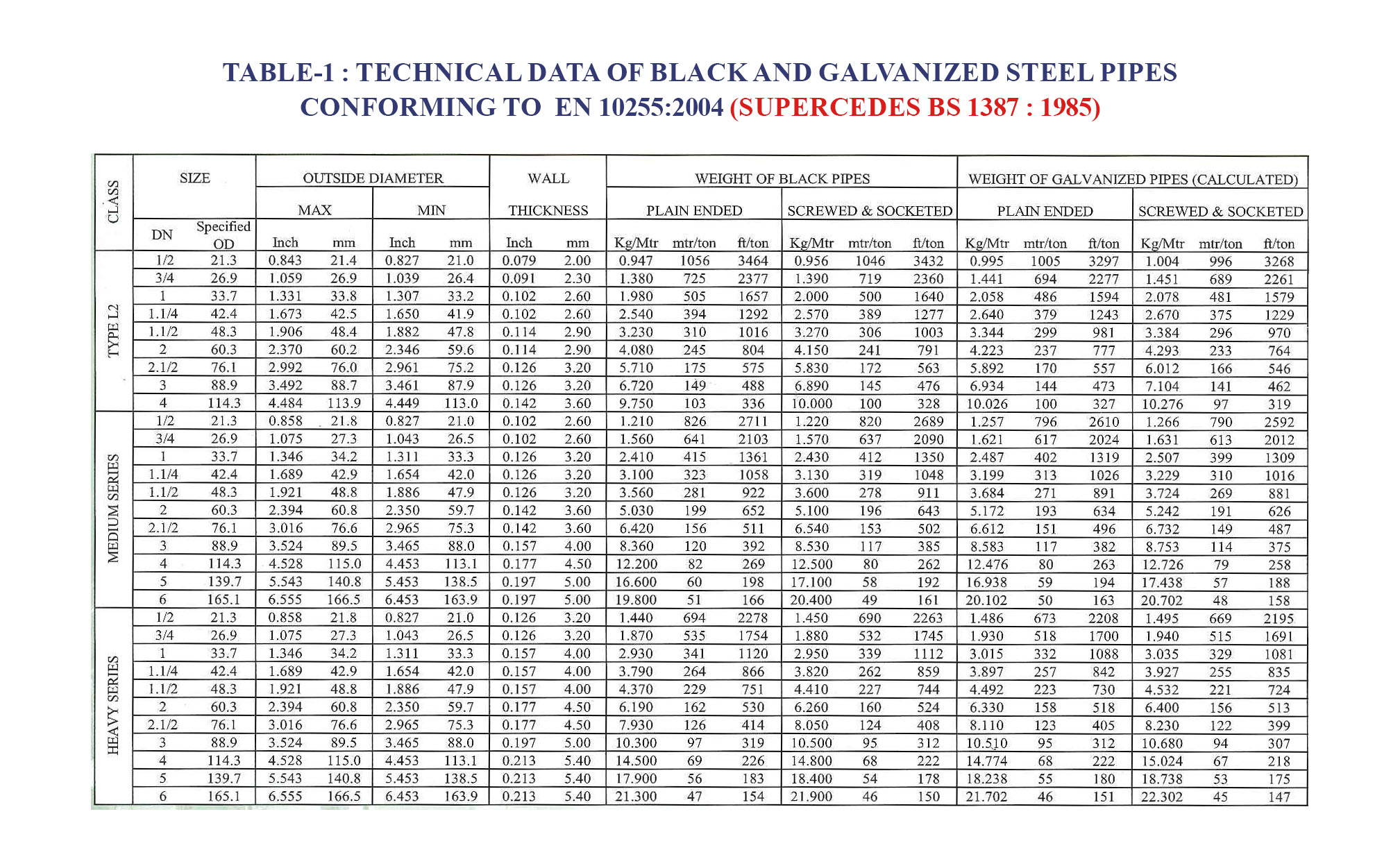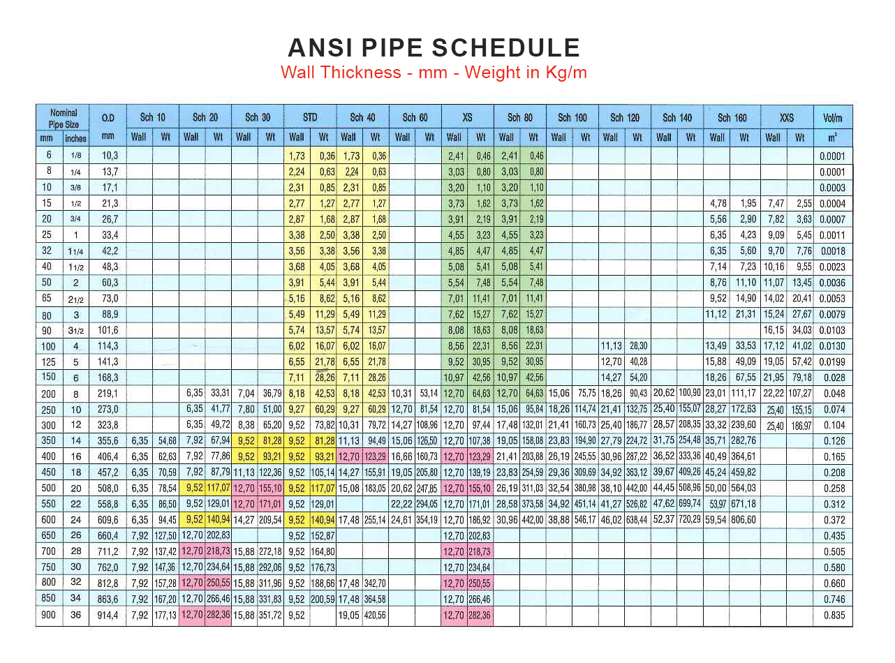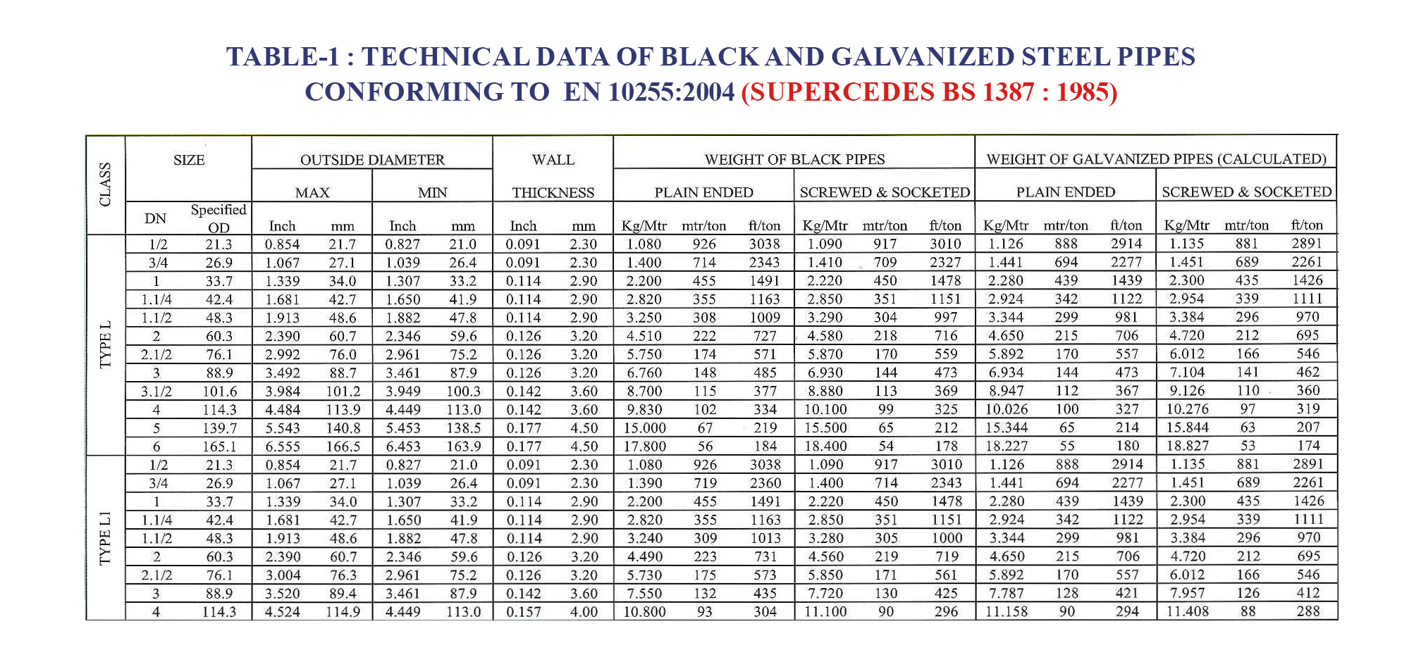 Size (mm) | Kg/mtr | Mtrs/Ton | Size (mm) | Kg/mtr | Mtrs/Ton |